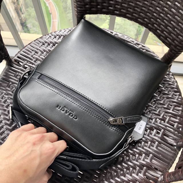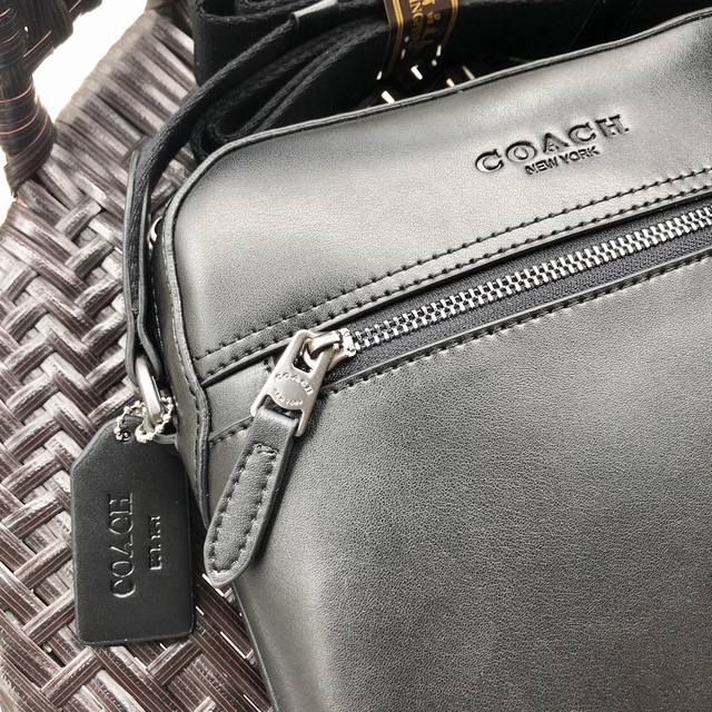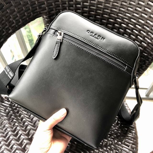 / 同步新款 Coach73336头层纳帕平纹牛皮男士单肩斜挎包,搭配原版五金,经典净版简约时尚,简单出行男士的日常用品都能装下,可对比细节,尺寸:23*27*5.