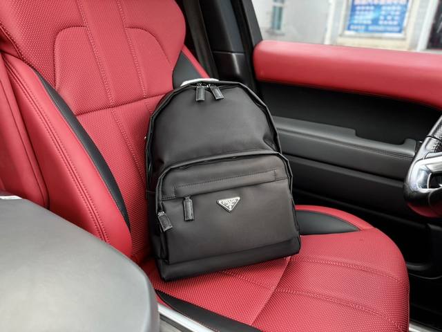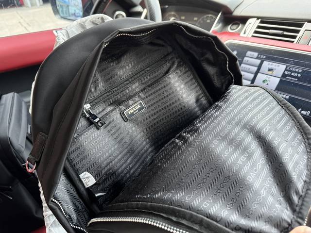高端货 “Prada 普拉达”双肩包 Prada普拉达 品牌logo标志拉链开合 皮革尼龙 背包双肩包 男女同款情侣款 黑色 进口原厂防水布艺面料高清五金logo标志 专用内里。顺滑拉链 油边平滑、做工精致每个细节到位!潮男必备款。规格:30X40X17Cm