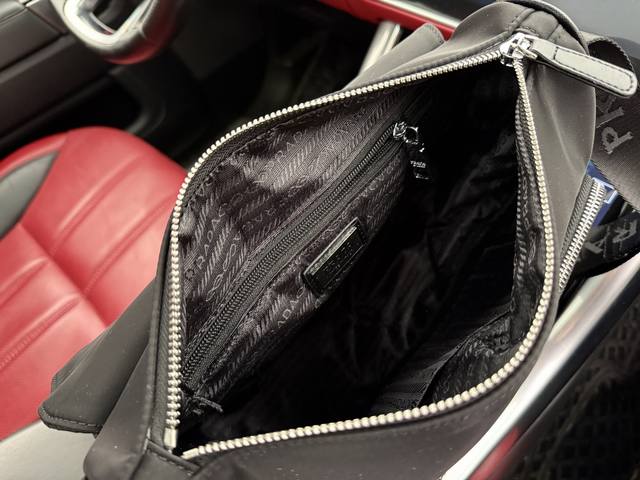 高端货 最新款 “ Prada ”普拉达单肩包普拉达邮差包斜挎包 字母Logo徽标可调节肩带Saffiano皮革邮差包单肩斜挎包 男款 黑色 尼龙和Saffiano 皮革斜挎包尼龙材质金属配件和钛金属拉链Prada徽标织物衬里两枚旁开扣 正面三角形珐琅徽标这款摩登时尚的单肩包配有可拆卸的小袋挂饰和空间宽大的内部隔层,彰显功能性。顺滑拉链 专用内里 高清五金标识。规格:30X24X11Cm