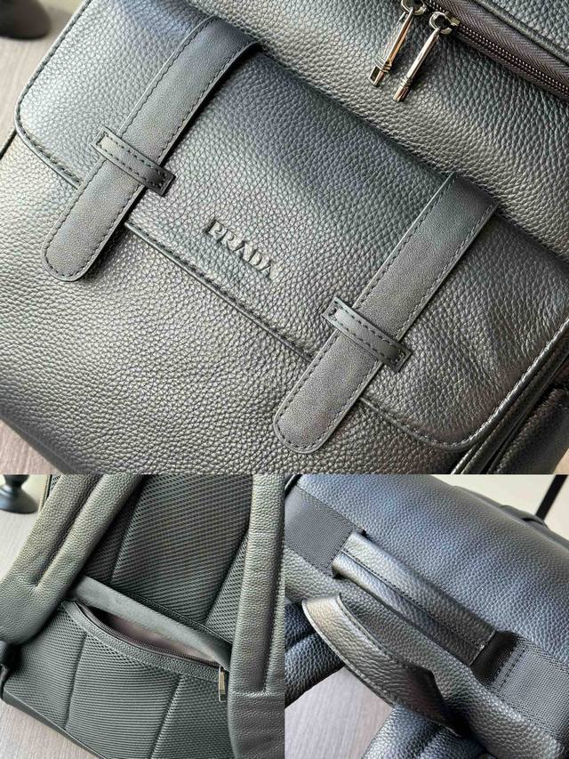顶级专柜老鼠高端狠货 最新火爆款普拉达手提双肩背包大量出货啦,叫嚣专柜货顶级原单货纸上谈兵吹牛皮的咱不会,请让狠货说话。款式可以复制抄袭,材料做工骗不了懂的人。里外都是顶级材质,顶级进口原厂 皮 意大利进口小牛皮荔枝皮纹 超高清压印Logo标志、超方便携带充电宝,充电线已及充电宝袋位,高端古铜色五金、专用高档里布、专用皮拉头、仿爆牙越拉越顺滑拉链、顶级油边超平滑、顶级设计师打造独特皮进口头层牛皮风格制作、旁边带手机充电线,超大容量空间多隔层设计笔记本电脑位+文件夹位+暗格拉链位、背后设计拉杆箱插位+暗格拉