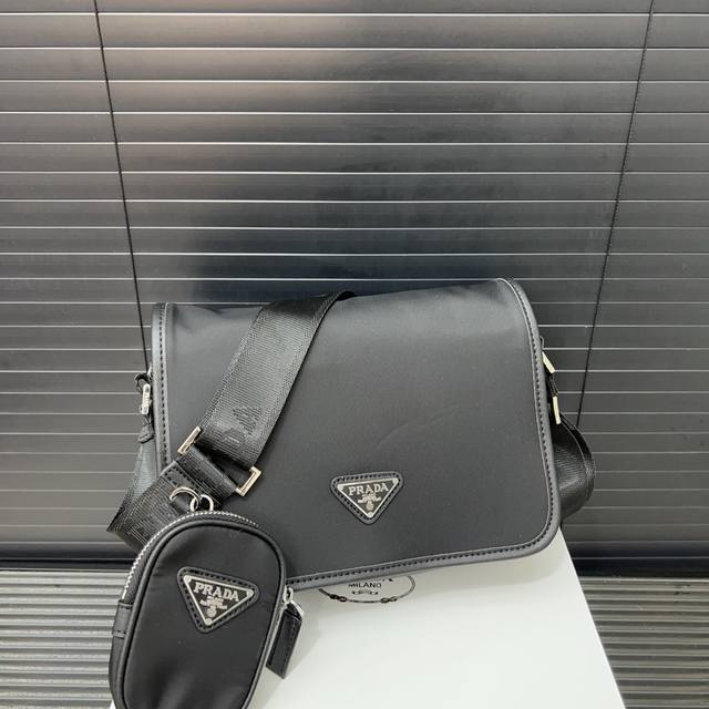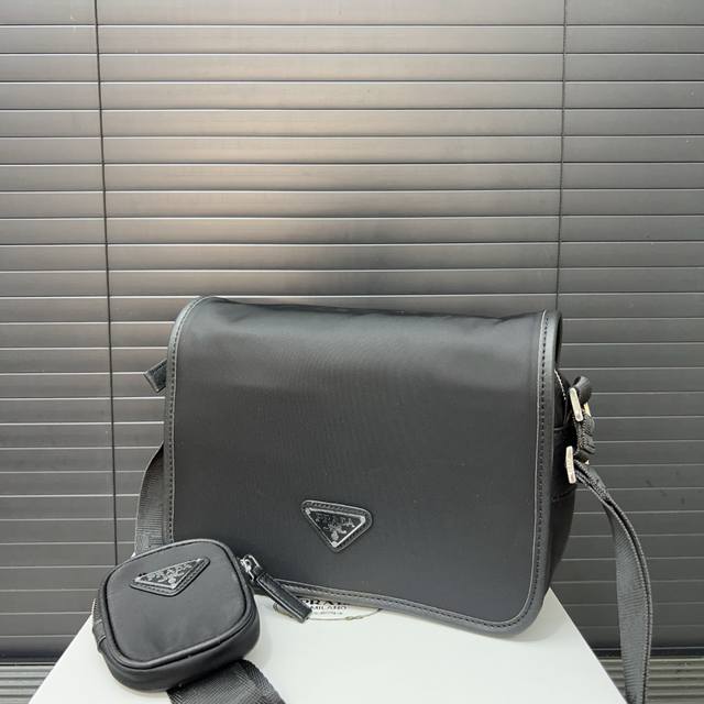 / Prada 普拉达 Re-Nylon二合一 尼龙布三角形徽标单肩包 邮差包斜挎 黑色三角标帆布邮差包 规格22 X 28 Cm