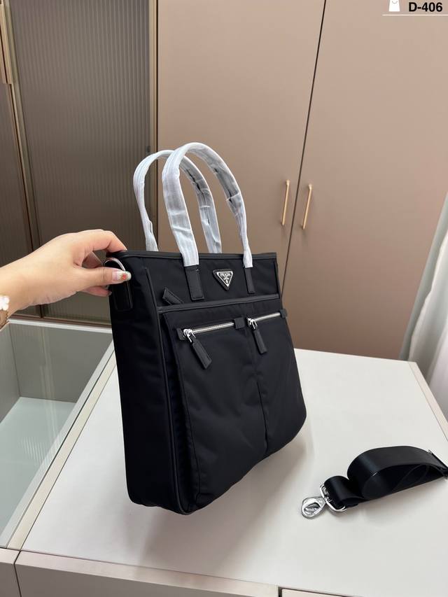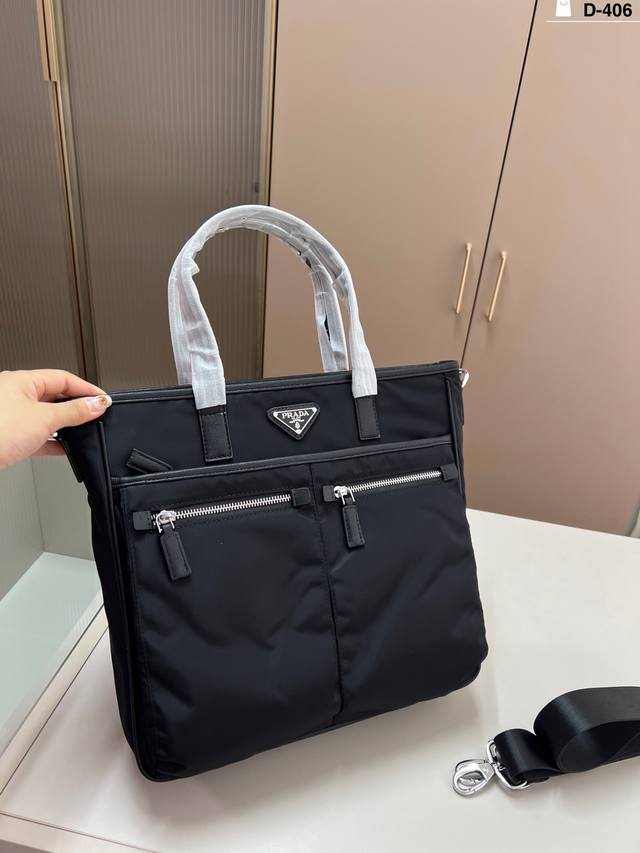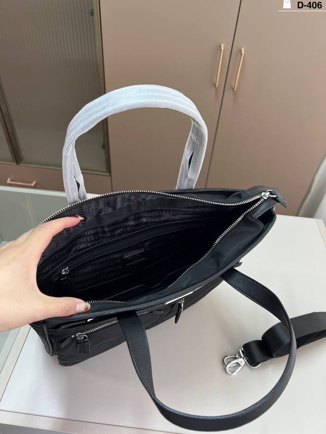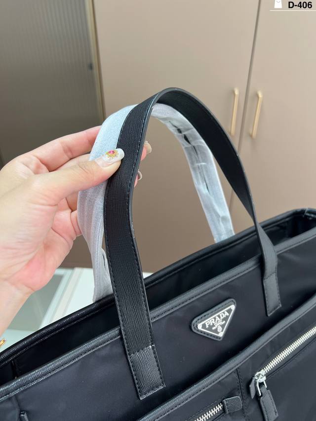 / Prada普拉达尼龙布公文包 男士休闲手提包电脑包 采用精湛镶嵌细工,经典百搭 实物拍摄 原厂原版面料D-406尺寸33×32