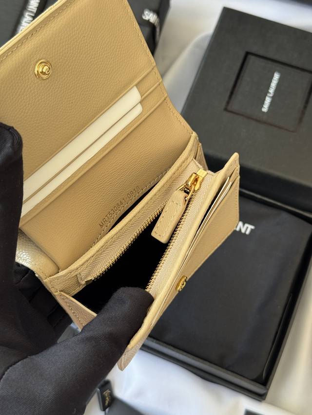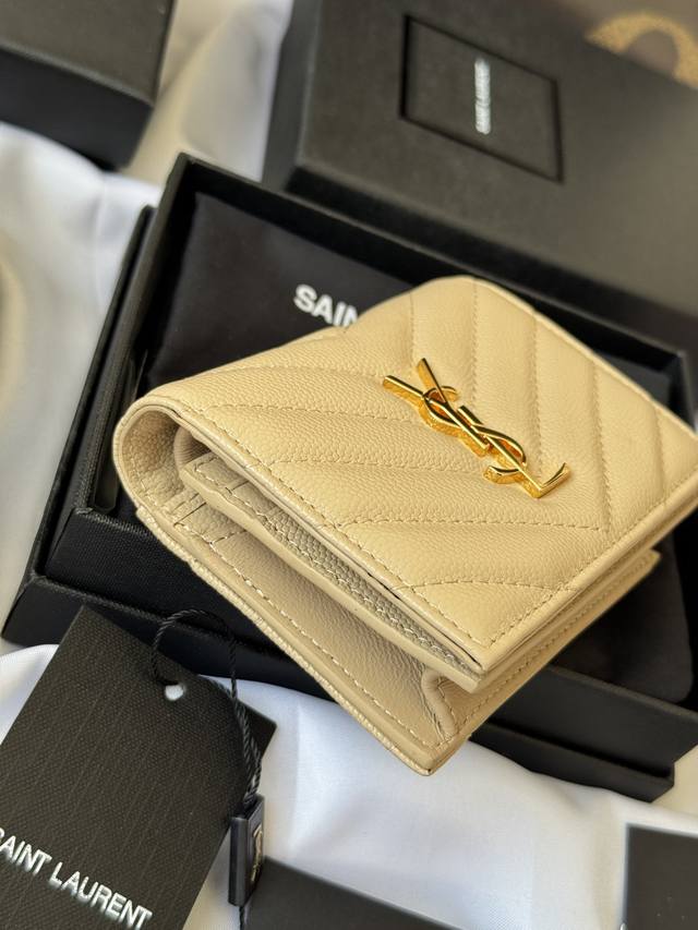 / ysl家 Y家短夹 正品开发 进口牛皮压鱼子酱 一个中央隔层,一个纸币隔层,六个卡片槽,一个拉链零钱袋,尺寸不大 用处不少 小巧玲珑,最经典的鱼子酱牛皮搭配“Y