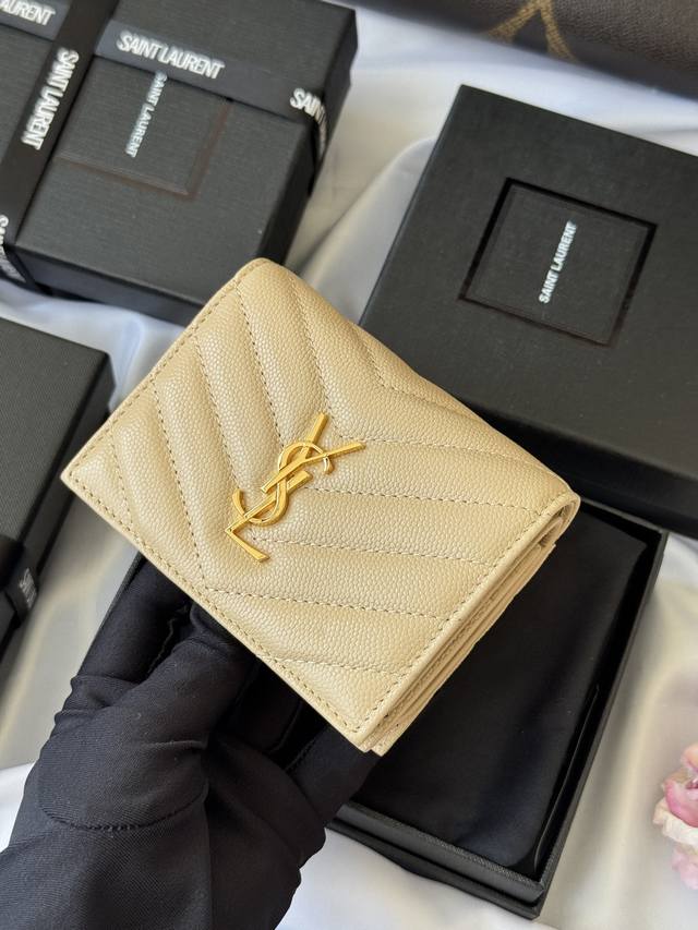 Ysl家 Y家短夹 正品开发 进口牛皮压鱼子酱 一个中央隔层,一个纸币隔层,六个卡片槽,一个拉链零钱袋,尺寸不大 用处不少 小巧玲珑,最经典的鱼子酱牛皮搭配“Y”字形绣线搭配大五金Logo,简约不失高档的设计,