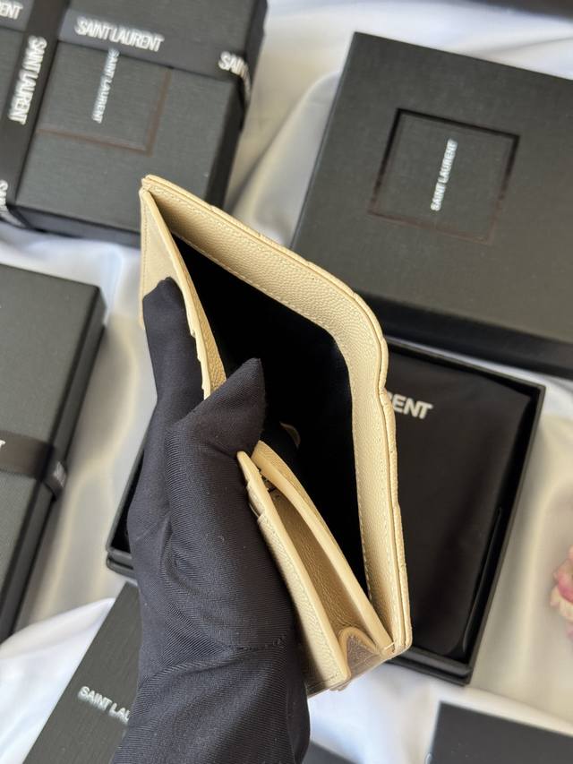 ysl家 Y家短夹 正品开发 进口牛皮压鱼子酱 一个中央隔层,一个纸币隔层,六个卡片槽,一个拉链零钱袋,尺寸不大 用处不少 小巧玲珑,最经典的鱼子酱牛皮搭配“Y