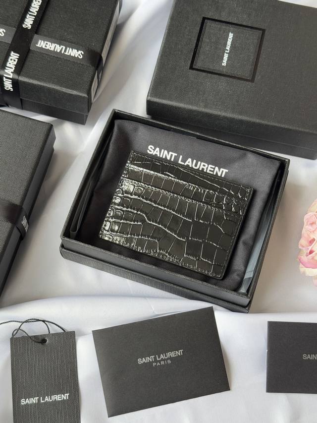 Ysl 最近经典卡包 鳄鱼皮出货 卡片夹 信用夹金属互扣式Ysl标准,提花凸纹缝线装饰,金色五金,5个卡位隔层,迷你可爱,可手拿 可放包里