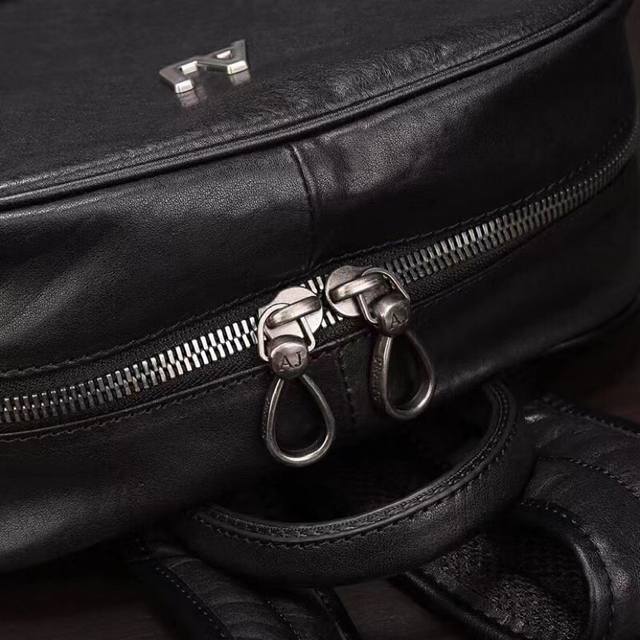 原单水货Aj阿玛尼男士双肩包,面料采用进口层头植鞣牛皮 皮纹清晰光泽度极佳,皮质手感柔软舒适完美诠释了皮的品质,代工厂p洗水麦+原版定制复古五金,顶级精细手工车