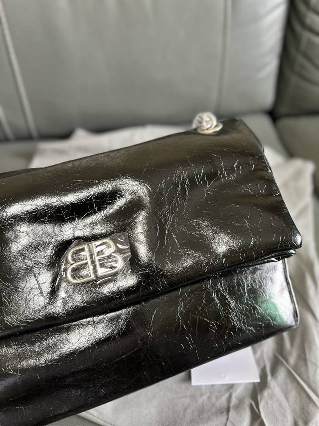 原单跑量 车线款 Balenciag*巴黎世嘉 Monaco 做旧金色Bb徽标翻盖闭合 Arena小牛皮 链条包手提单肩包...