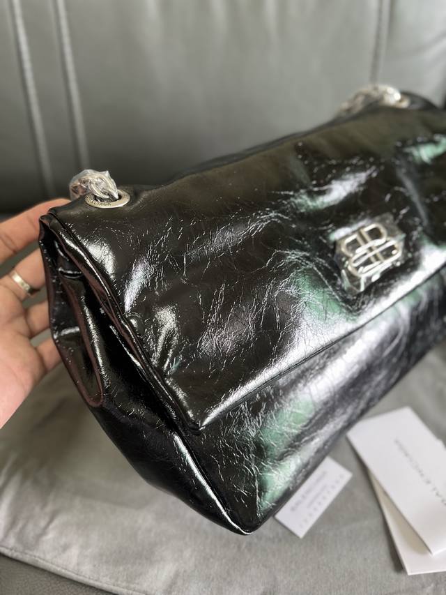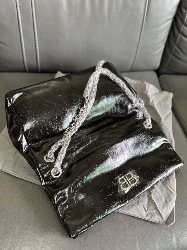 原单跑量 Balenciag*巴黎世嘉 Crush 哑光枕头包 Niki包 牛皮 链条单肩包 中号 女款 黑色Crush...