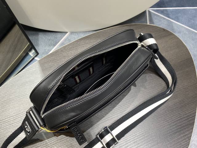 / Bally巴利男士斜挎包 Size:27X8X18Cm 头层牛皮制作,定制五金配件,拉链开合既方便实用又增加安全感。正面饰有品牌Logo,背带为品牌标志性的Tr