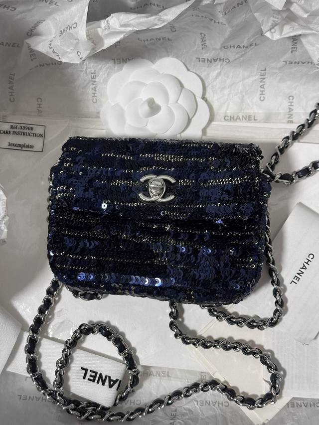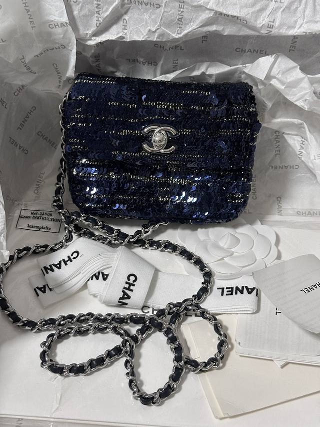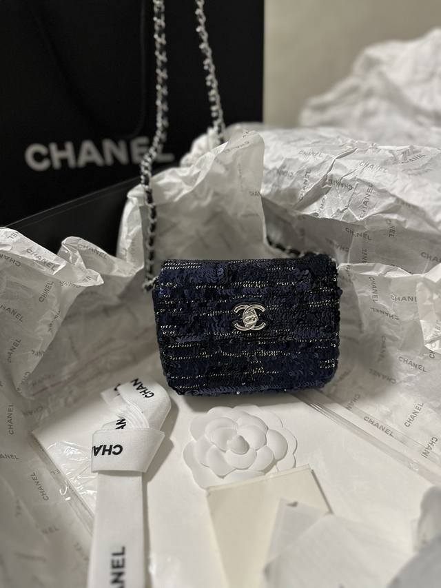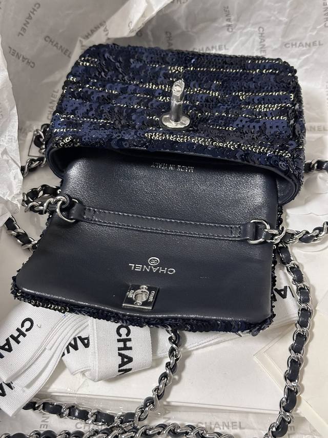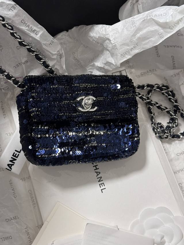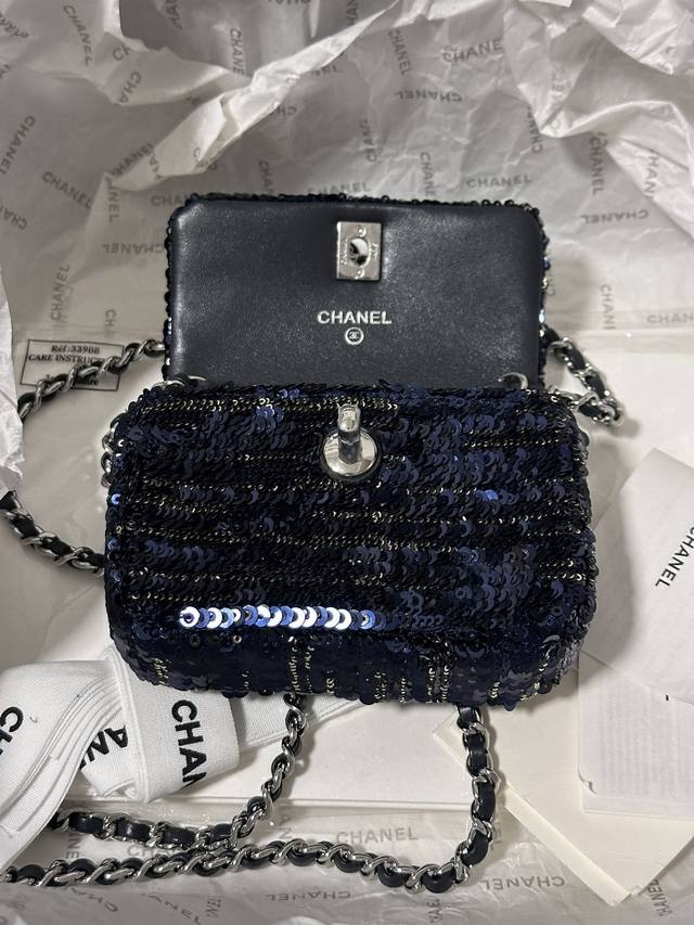 Chanelmini 黑蓝亮片小废包 装不下手机只能装可爱.. 链子可斜挎 It’S So Cute