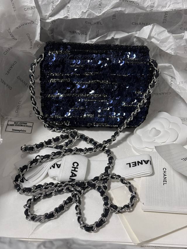 / Chanelmini 黑蓝亮片小废包 装不下手机只能装可爱.. 链子可斜挎 It’S So Cute