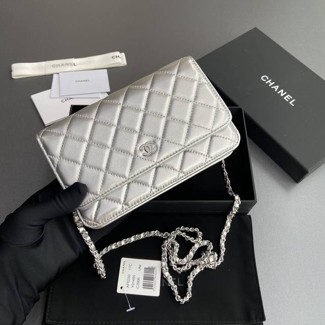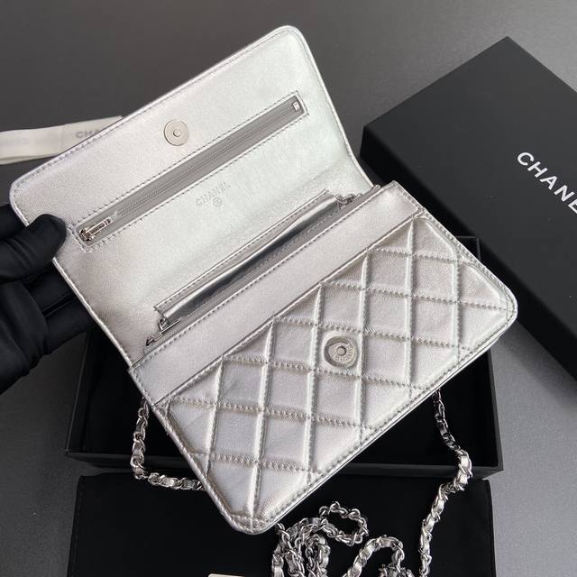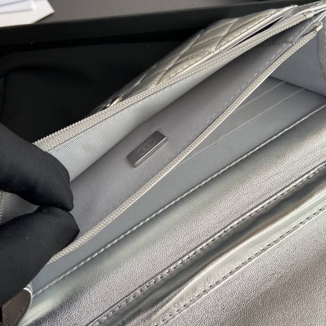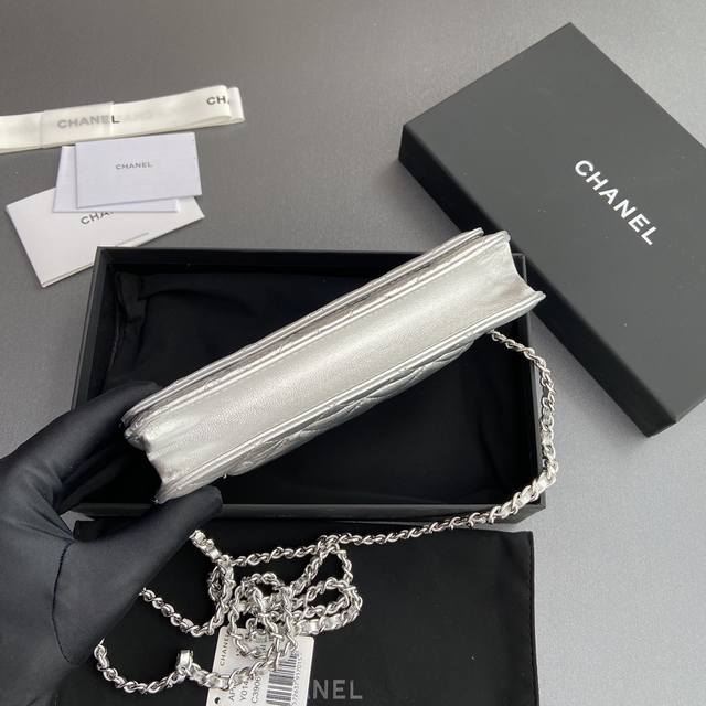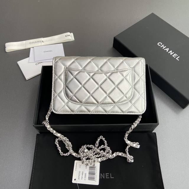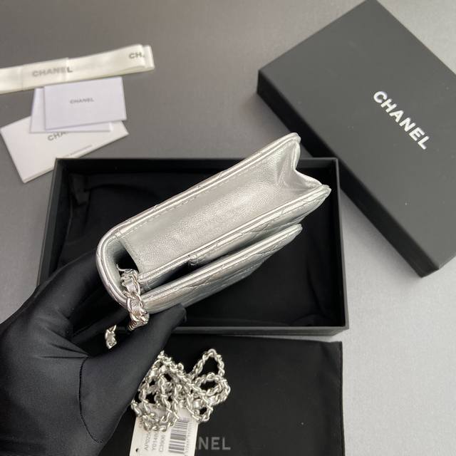 / 原厂皮 小香进口意大利小羊皮 货号:Ap0250 尺寸:W20×H13×D3.5Cm 颜色:銀色羊皮銀色鋼唛