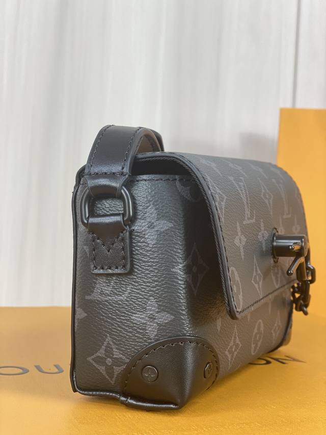 M81783黑花 Monogram Taurillon 皮革 与steamer 风格链条等经典元素相得益彰。配有可调节肩带,便于背携。拉链隔层收纳空间充裕,搭配前袋翻盖和磁铁锁扣,确保物品安全无虞。 18.0X 11.0X 6.5厘米 长度 X 高 X 宽