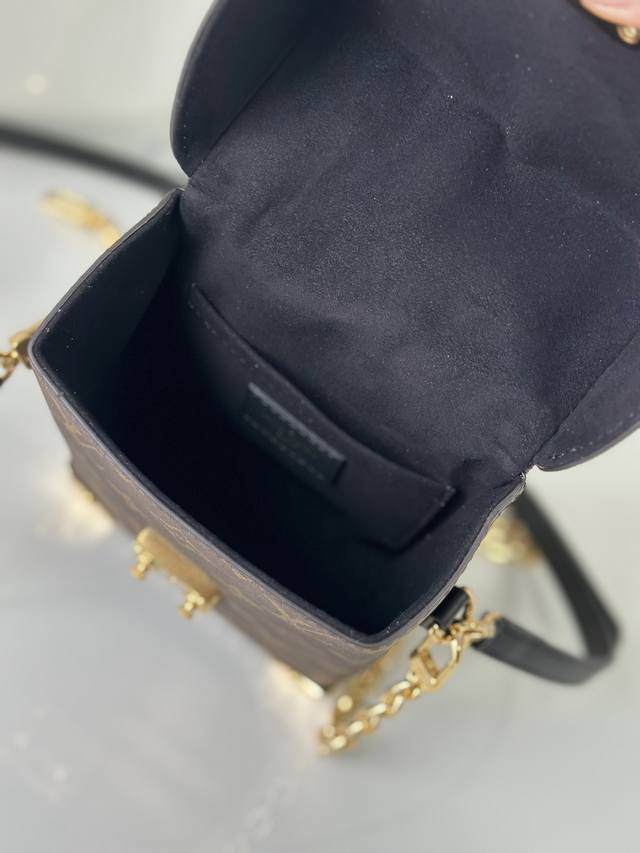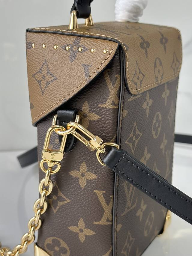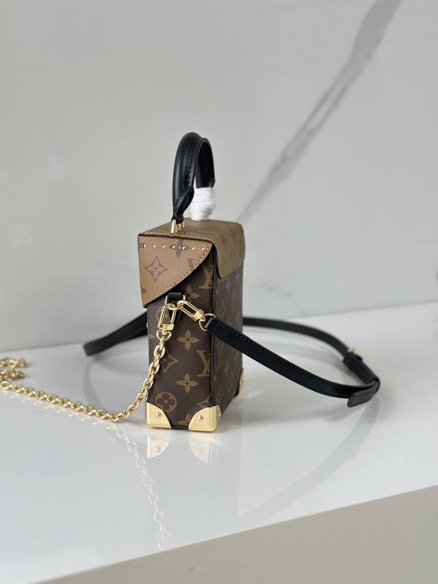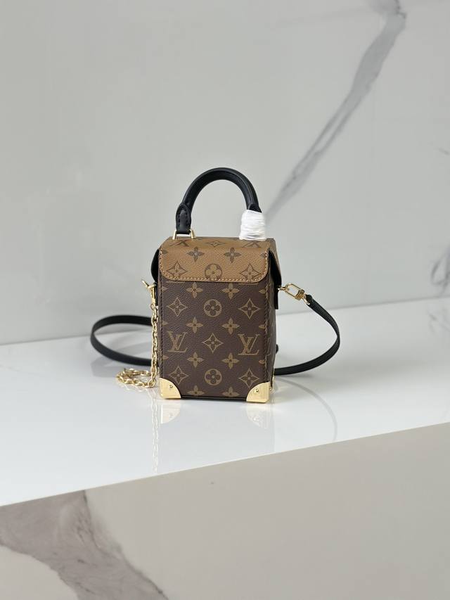 M82465黄花 盒子包链条包系列 Camera Box 手袋 本款 Camera Box 手袋以 Monogram 和 Monogram Reverse 帆布塑造摩登构型,融合 S-Lock 锁扣,金属包角和饰钉等 Petite Malle 手袋的标志性细节。纤细链条彰显柔美格调,顶部手柄再添舒适背携方式。尺寸:12.5 X 17.6 X 6 厘米