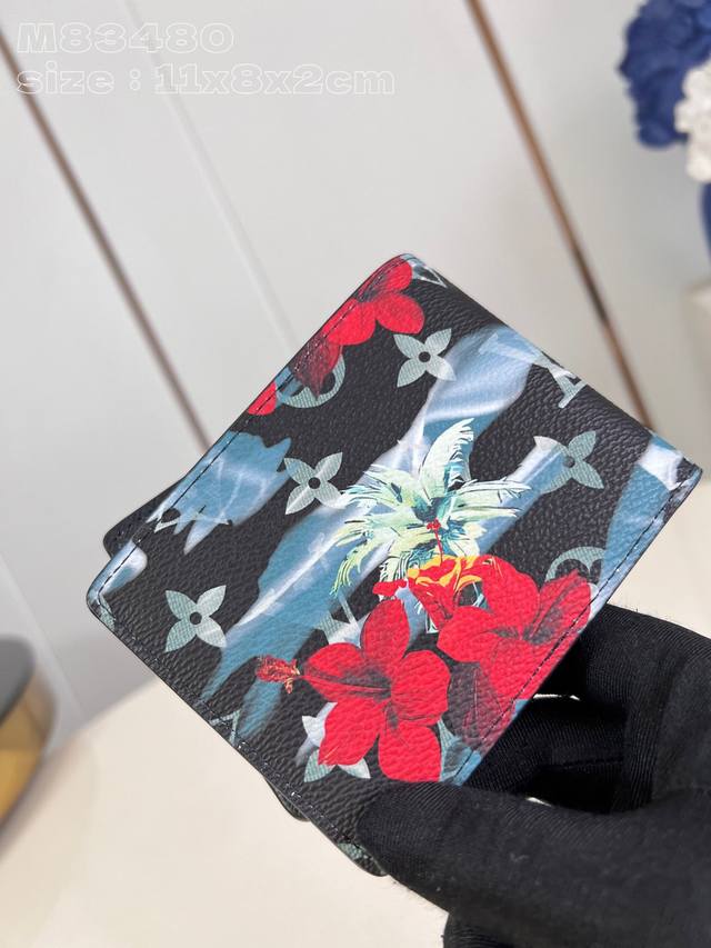 顶级原单 独家实拍 M83480绿 M83468 本款slender钱夹取材 Monogram Surfin’ 涂层帆布,以热带元素和品牌经典标识交叠缤纷图案,为标志性单品注入复古气息。内部有八个卡槽和一个用于存放钞票的隔层。Size:11X8.5X2Cm C