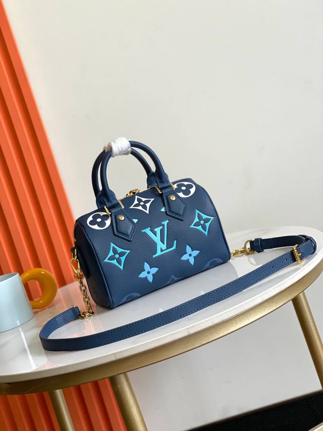 顶级原单九色现货m58953,M46575本款 Speedy Bandoulière 20 手袋设计精巧,风格时尚,可随心携带日常所需。采用光滑的 Monogram Empreinte 粒面皮革制作而成,饰有大号 Monogram 压纹,搭配挂锁、金属件、可拆卸可调节的链条肩带以及 Toron 手柄20.5 X 13.5 X 12 厘米 长度 X 高 X 宽