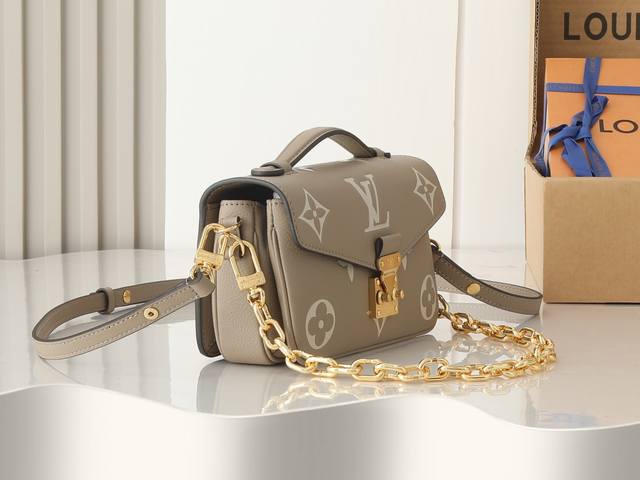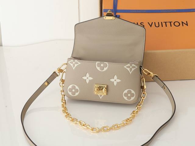 变码芯片版 M46595黑色 M22942米白 M23081杏色 M46596黑色顶级原单 本款 Pochette Métis East West 手袋取材 Monogram Empreinte 压纹皮革,展现品牌风尚与摩登元素的融合。传统 S-Lock 锁扣和可拆卸短链条闪耀金属光泽,精巧构型囊括齐整内里,可调节肩带方便都市畅行。 21.5 X 13.5 X 6.0 厘米 长 X 高 X 宽