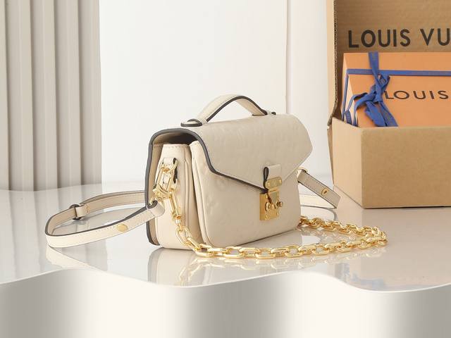 变码芯片版 M46595黑色 M22942米白 M23081杏色 M46596黑色顶级原单 本款 Pochette Métis East West 手袋取材 Monogram Empreinte 压纹皮革,展现品牌风尚与摩登元素的融合。传统 S-Lock 锁扣和可拆卸短链条闪耀金属光泽,精巧构型囊括齐整内里,可调节肩带方便都市畅行。 21.5 X 13.5 X 6.0 厘米 长 X 高 X 宽