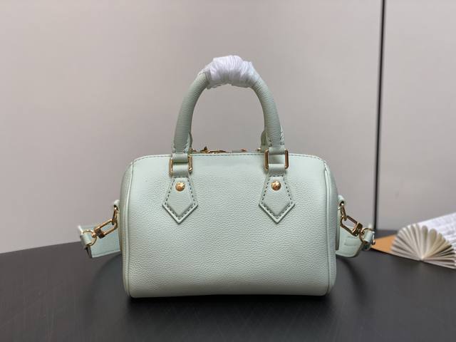 原单精品 M24605浅绿 全皮diy枕头包系列 变码芯片版 Speedy 18 手袋 2024中国七夕限定speedy18,在满足日常需求上搭配了精致小巧可自行多种穿戴方式的配饰,加上可拆卸皮革肩带成就舒适肩背和斜挎体验。18.0X12.5X11.0Cm。