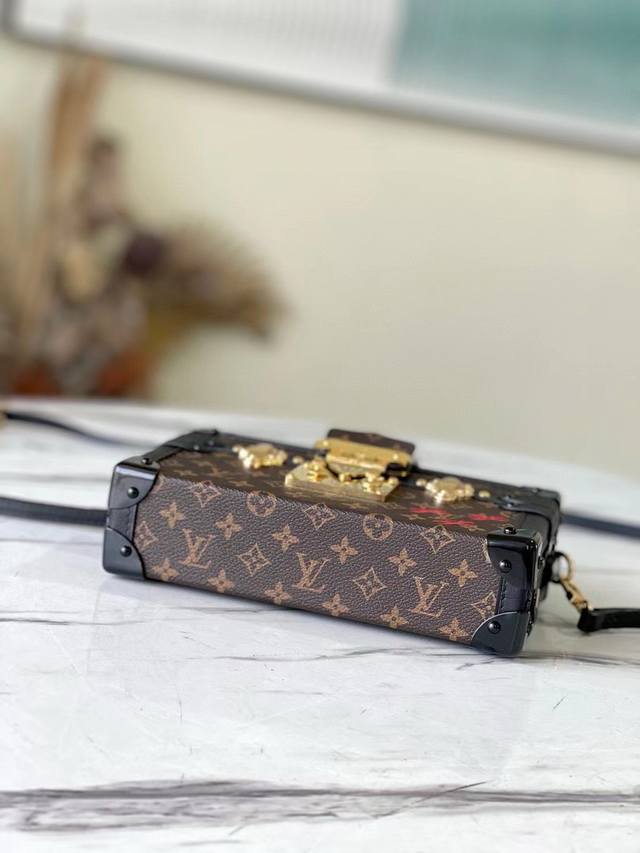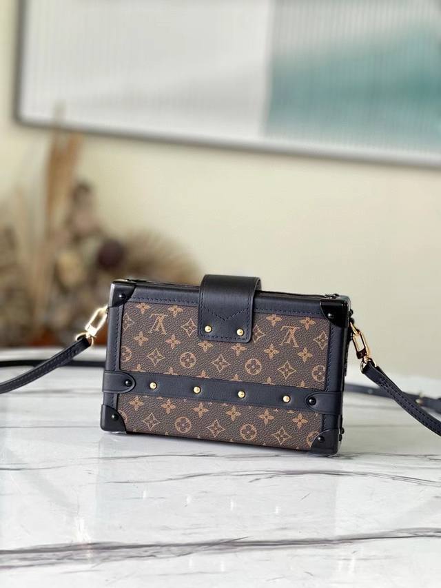 钢五金 顶级原单 M44199 M45943全钢亮金 Petite Malle 手袋 此款petite Malle手袋采用经典的monogram帆布面料,灵感源自富有的银行家albert Kahn于20世纪初期设计的定制旅行箱,以3个十字图案为标志性要素。经典的优雅风格,适合夜间外出聚会使用的精品小号包袋。20 X 12.5 X 5 Cm 长 X 高 X 宽