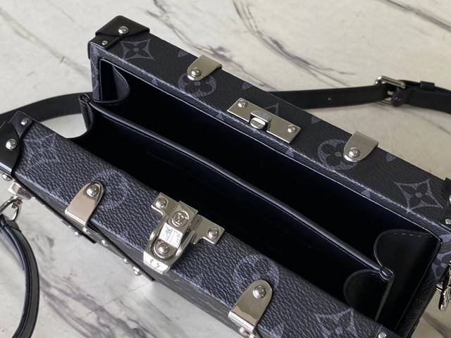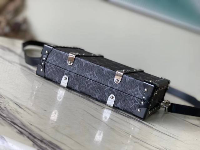 / 钢五金 顶级原单 M20954 黑花 Neo Wallet Trunk 手袋援引硬箱的木条和金属加固包角等元素,搭配可拆卸肩带。充裕空间可收纳手机、钥匙、钱夹、