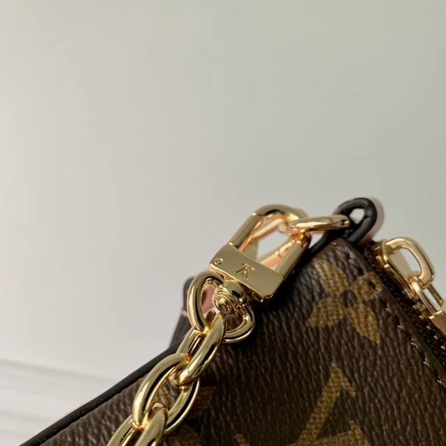 Bloom Pouch 手袋拼接经典 Monogram 帆布和侧面的淡雅皮革,以温婉设计演绎 Monogram 花卉的灵感启发。玲珑构型可收纳短款钱夹、手机、钥匙和口红等日常所需,可拆卸链条实现多种背携方式。