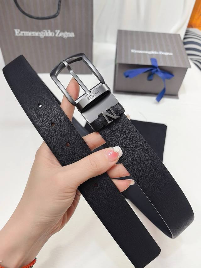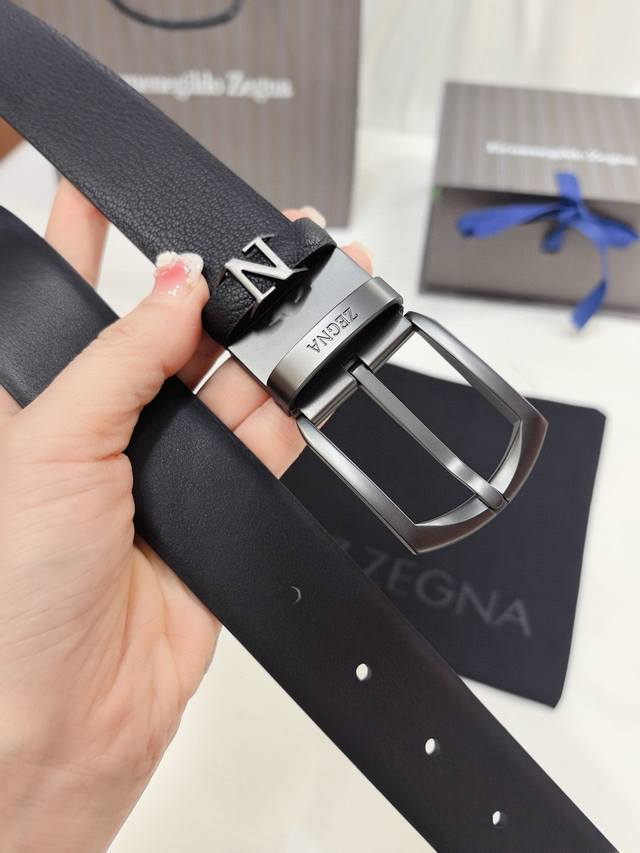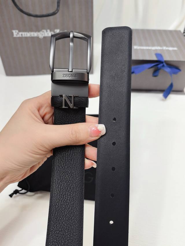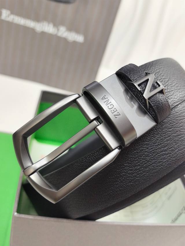 / 杰尼亚新款更新,Binario 针扣,深钌灰色饰面,可完全调节双面皮带,正面为黑色马德拉斯格纹雕纹小牛皮,反面为黑色小牛皮,意大利制造3.5Cm宽度