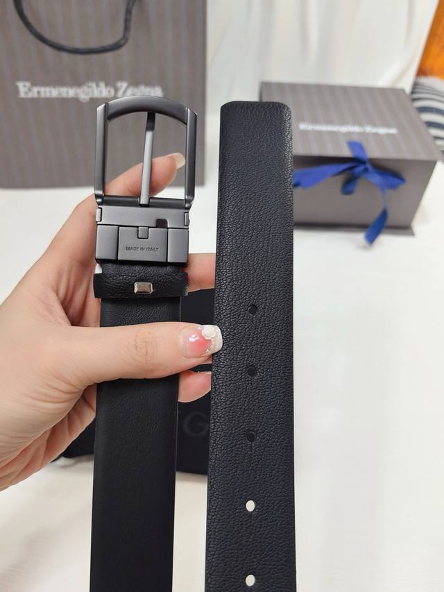 杰尼亚新款更新,Binario 针扣,深钌灰色饰面,可完全调节双面皮带,正面为黑色马德拉斯格纹雕纹小牛皮,反面为黑色小牛皮,意大利制造3.5Cm宽度