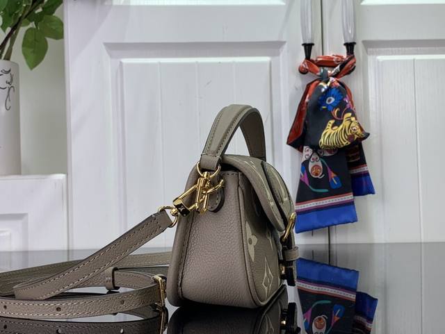 双色monogram Empreinte皮革的nano Diane是标志性diane包的小型化版本。这件精心制作的作品具有原始设计的所有关键细节,包括圆形翻盖、管道边缘和皮带式磁性闭合。其可拆卸的手柄和可拆卸的可调节肩带提供了不同的携带选择。