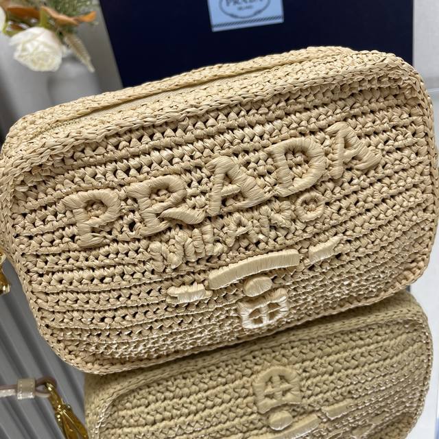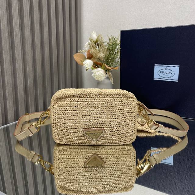 / 正品级 顶级原单 草编相机包 夏天里的一道光,整个包身采用顶级拉菲草纯手工制作,Logo纯手工包制,配有一条可调节长肩带,背面设计三角标五金! 款号:1Bh19