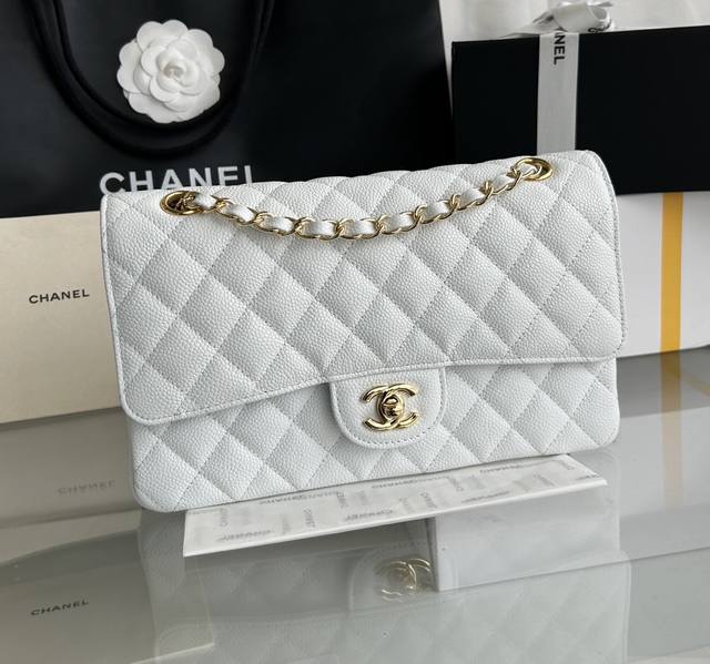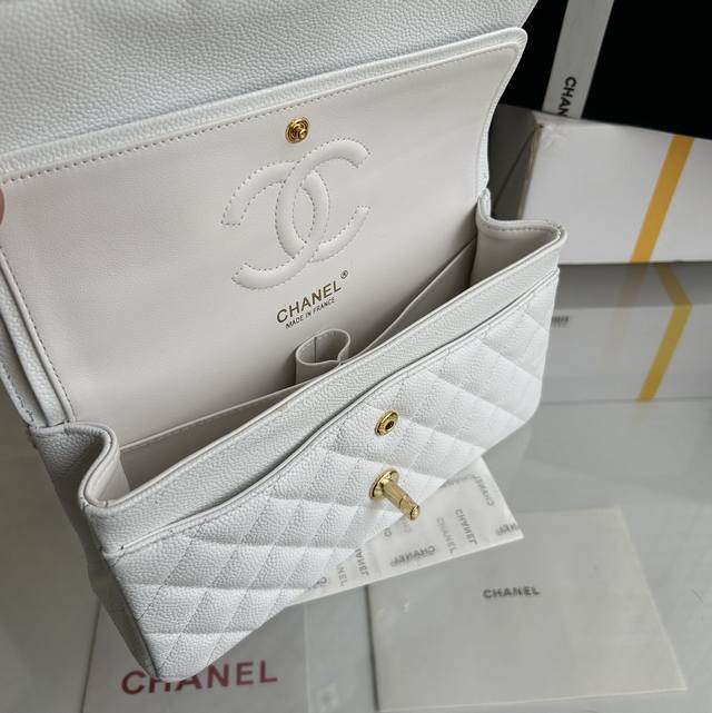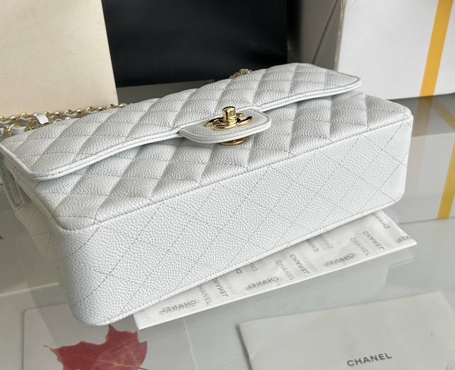 贸易渠道订单classic Flap牛皮菱格纹单肩包chanel经典菱格纹牛皮cf,此款是专柜难买指数五颗星★★★★★Cf是一款收藏级的包,并且无敌百搭!不管你约会、上班,去pary甚至是急着出门不知道拿什么包包衬衣服的时候,Cf绝对不出错,霸气!御姐们必备款!牛皮也就是我们比较常见的鱼子酱皮荔枝皮,相比羊皮更加耐磨耐造、不易变形,比较值得入手,实用寿命也会更长!复古与摩登的元素,创造岀不同的时尚效果,让人惊喜又爱不释手,活力酷感,潮流时尚全新独特定