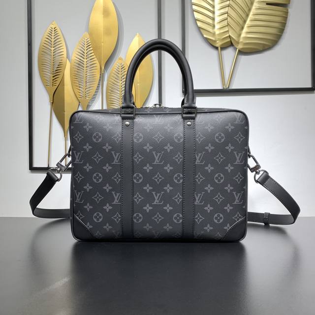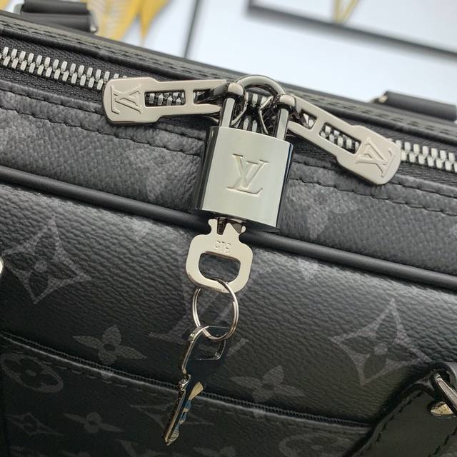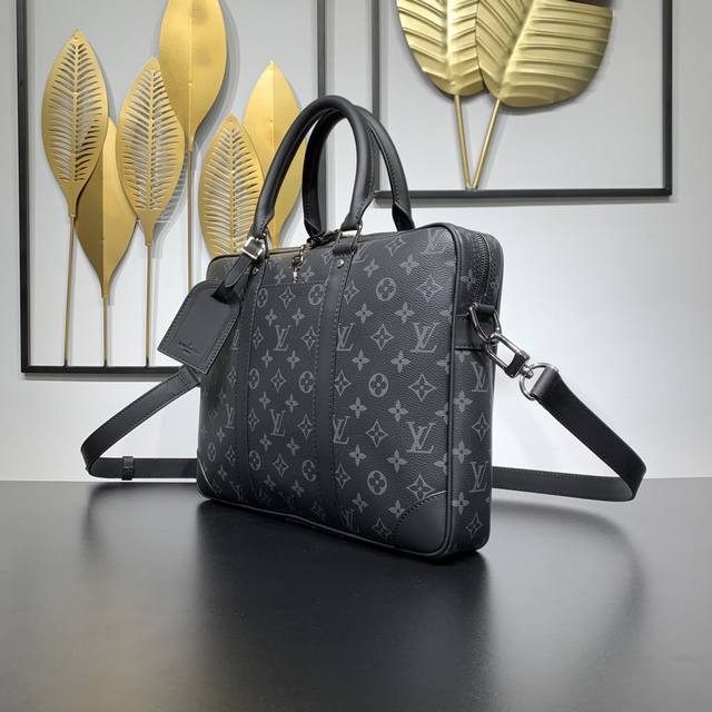 本款 Voyage 小号公文包以 Monogram Eclipse 帆布塑造简明轮廓,搭配顶部皮革手柄、侧带和加固包角。可拆卸并调节的肩带拓展多种背携方式。
