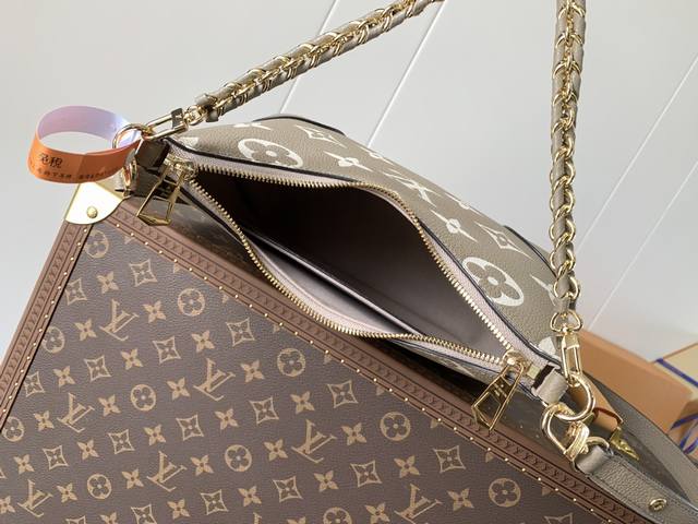 M12930黑色 M13224灰色 本款 Boulogne 手袋选用 Monogram Empreinte 皮革重绎经典设计,以多种背携方式彰显个性风采。内贴袋可轻松收纳智能手机,编织链条融入耀目金属件。29.0 X 1 X 9.5 厘米 长 X 高 X 宽