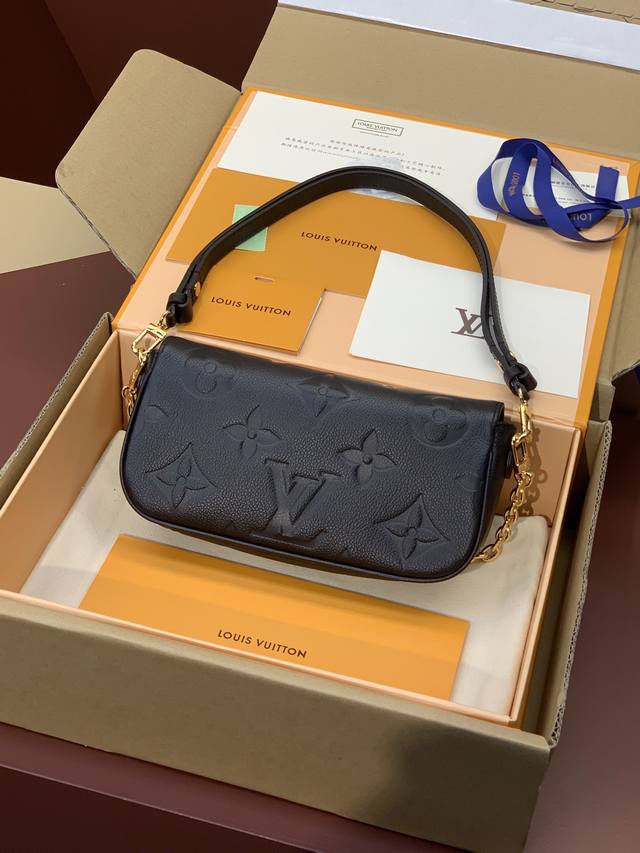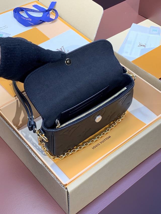 特惠 升级版本m82211 黑色压花!Wallet On Chain Ivy 手袋为 Monogram Empreinte 粒面皮革压印大号 Monogram 图案,塑造柔软舒适的贴身构型。磁扣翻盖开启充裕空间,轻松收纳日常所需。宛如珠宝的链条和可调节皮革肩带均可拆卸,实现多种背携方式,出席昼夜场合皆宜。尺寸:23.5×12×4.3Cm。