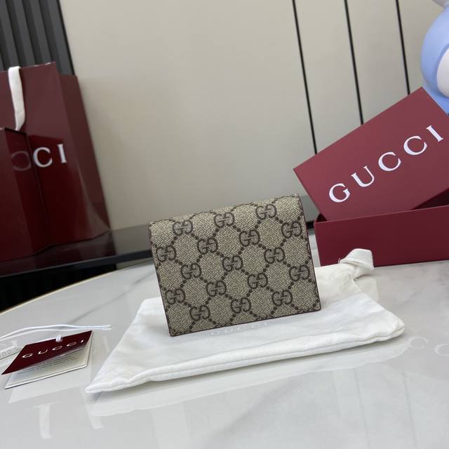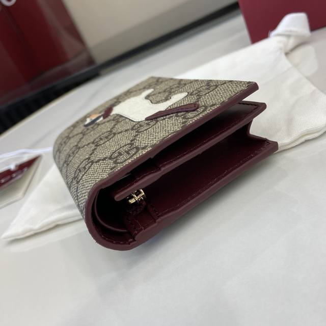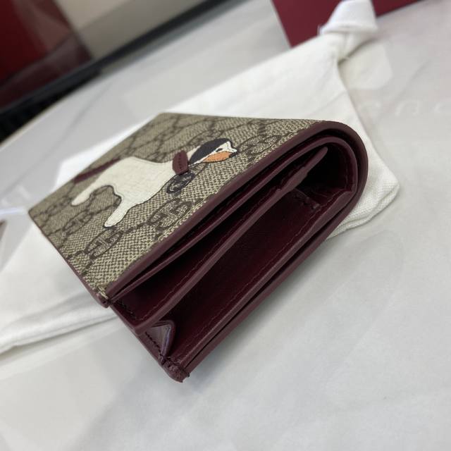 配全套原厂绿盒包装 饰小狗细节gg迷你钱包,猫咪、小狗和熊猫等可爱俏皮的动物们齐聚一堂,为多款以全新gg字母图案涂层织物打造的小件配饰添上点睛之笔。这些趣致图案采用丝网印刷技术和皮革拼布工艺匠心制作。小狗细节为这款迷你钱包注入满满活力。米色和深棕色全新gg字母图案涂层织物,小狗细节皮革贴饰,塔夫绸衬里,内部:5个卡片隔层、1个开口袋、1个拉链袋和1个钞票隔层,按扣开合