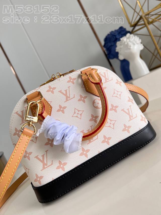 顶级原单 独家实拍 M53152白花 M46922 Nicolas Ghesquière 为此款 Alma Bb手袋取材崭新 Monogram Dune 帆布,以细腻沙丘色调宣示鲜明个性。半做旧牛皮革饰边为经典构型注入摩登气息。23.5 X 17.5 X 11.5厘米 长度 X 高 X 宽