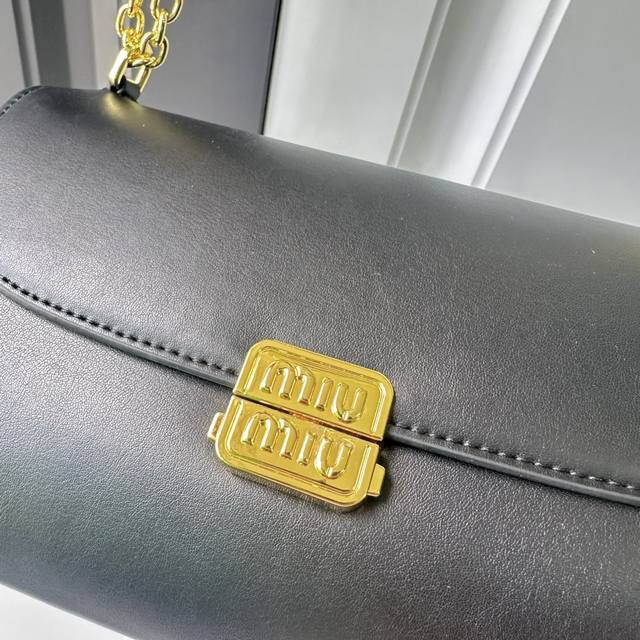 新款 Miumiu 5Bd266 Mium新品法棍包,这款单肩包延续经典设计,采用轻薄填充皮革设计,别具一格,顶级小牛皮材质,搭配优雅的正面翻盖与可调节金属肩带,风格百变多样,精致优雅,随性慵懒,日常休闲,上班通勤,怎么搭都好看,尺寸:24X13.5X9Cm