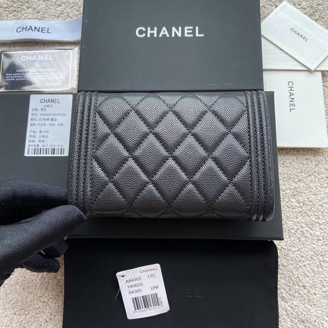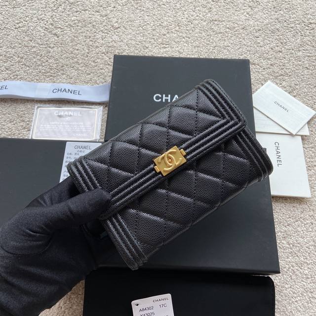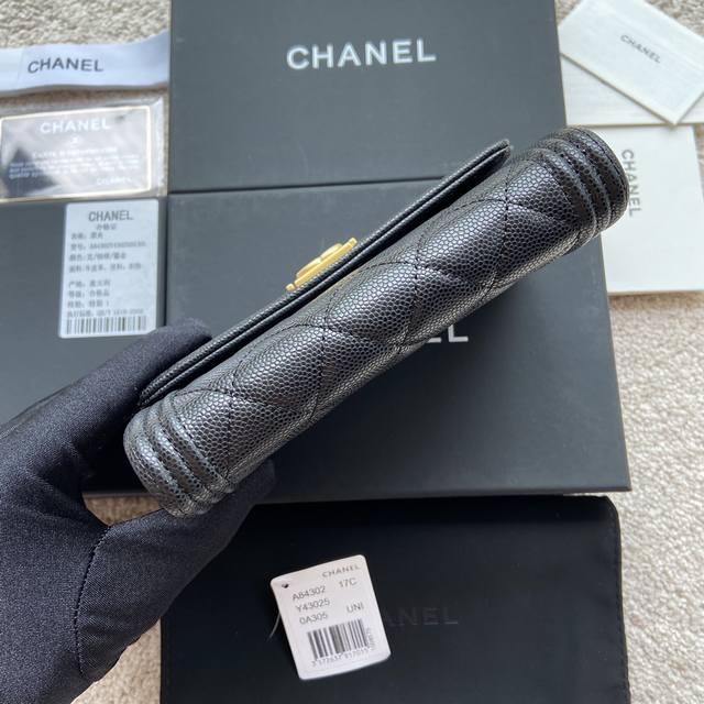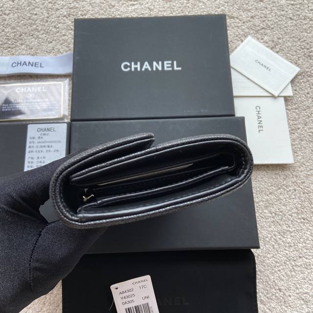 / 原厂皮 小香进口意大利颗粒小牛皮 货号:A84302 尺寸:W15×H10×D2.5 颜色:黑色细球纹金色唛