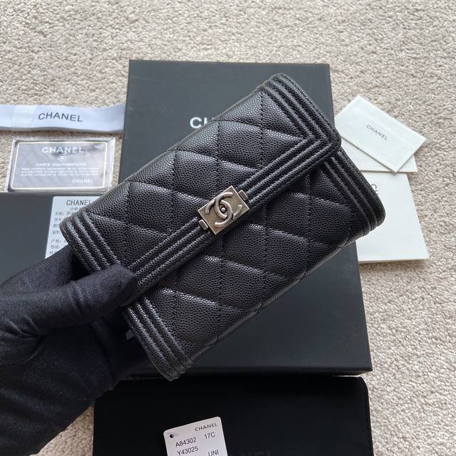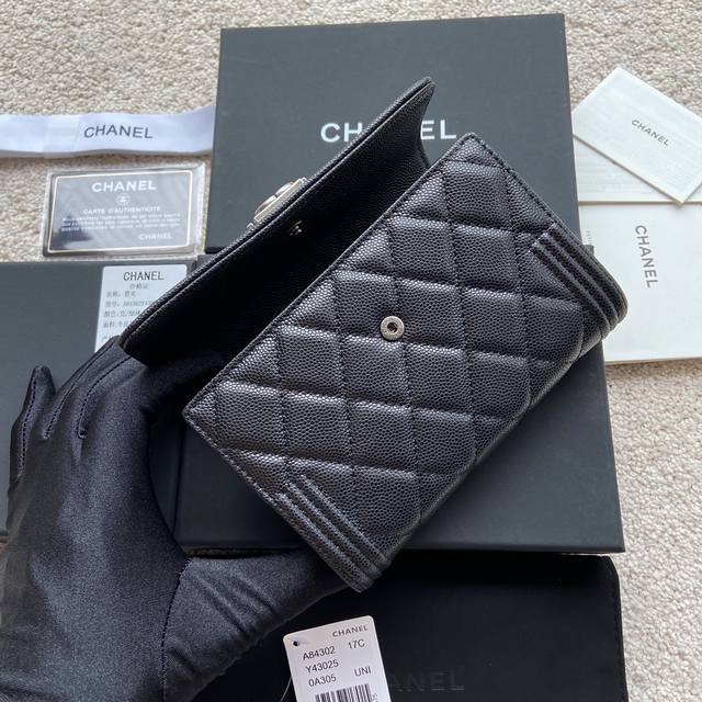 / 原厂皮 小香进口意大利颗粒小牛皮 货号:A84302 尺寸:W15×H10×D2.5 颜色:黑色细球纹古银唛