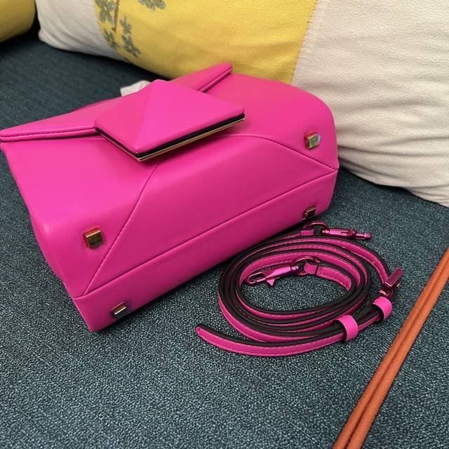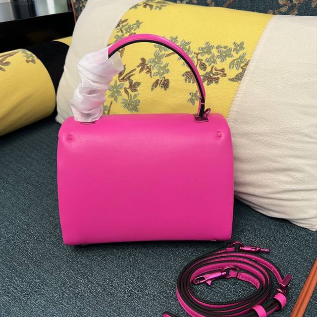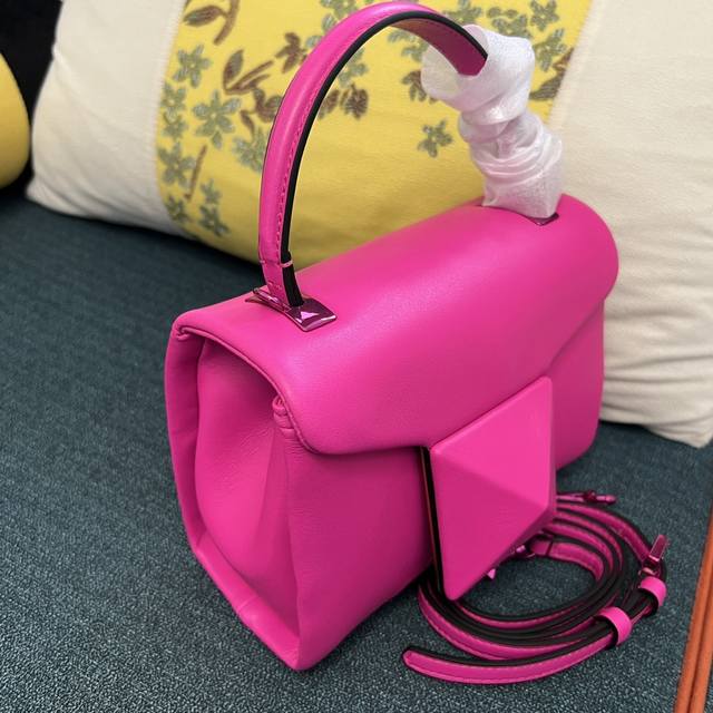 皮扣型号:1013 One Stud迷你羊皮手袋,正面采用超大铆钉开合。 -得益于可调节肩带和提手的设计,这款包即可手提,亦可肩背和斜挎 -同色系金属配件 -磁
