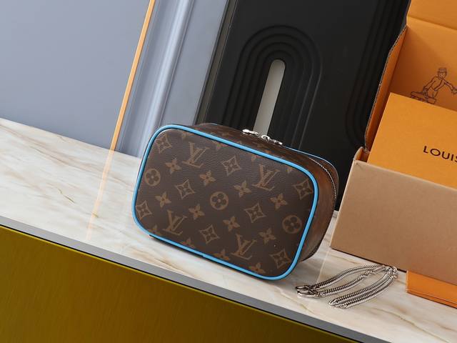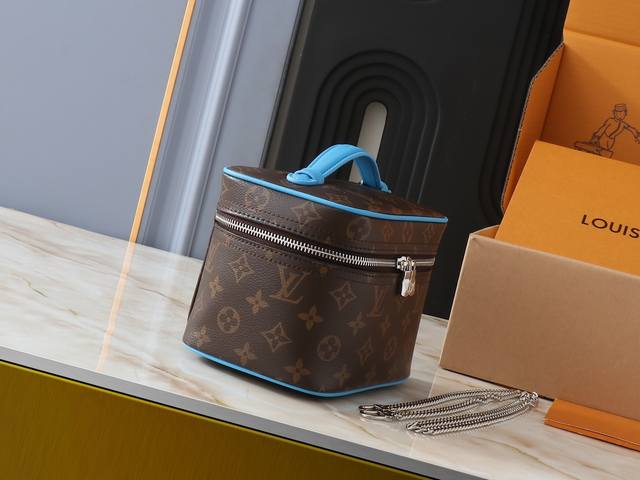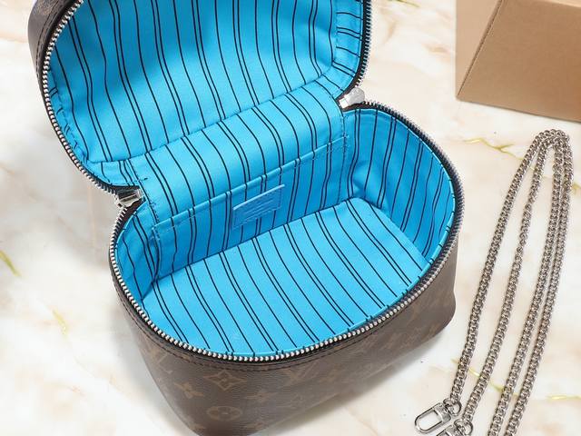 升级原版 M44495 M46766 本款 Nice 迷你化妆包以 Monogram Macassar 帆布塑造精巧构型,可轻松置入旅行袋或行李箱。顶部皮革手柄