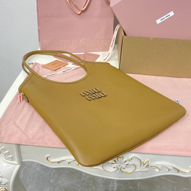 5Bg231,Miu家新款伊势丹限定托特包,官网主推,今年绝对爆款式,顶级进口小牛皮,皮面细腻光滑柔软,质感高级,包身软而不塌,气质随性慵懒,容量超大,日常出街背它回头率百分百,手工缝制皮面Logo标志,内里全新麻布里,配拉链式口袋,尺寸35 X 40Cm,配原版包装