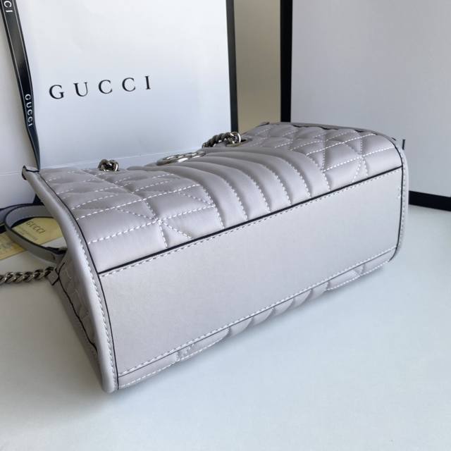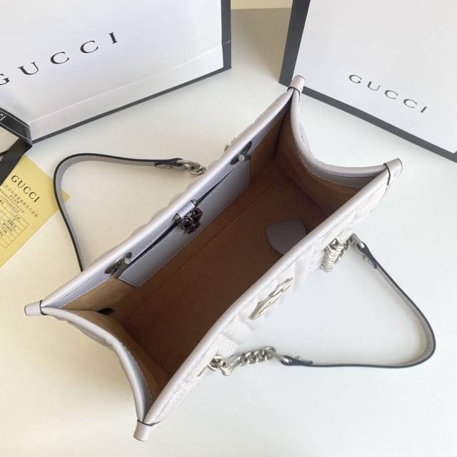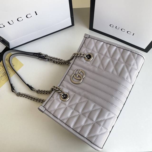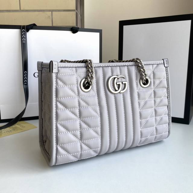 Marmont系列托特包购物袋,最新马尔蒙新绣线系列,最新设计绣线突出了设计师前卫的理念,是经典的传承,又是品牌的升华。全套对版复古银色五金,对版内里 细节