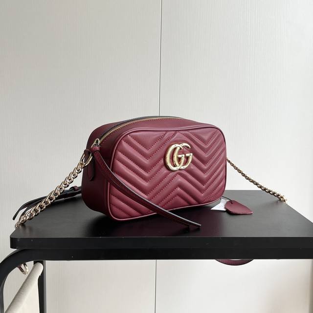 / 升级版实拍# 型号:447632酒红 尺寸:24*13*7牛皮 Gg Marmont New Disco Bag Ins又一大热门,网红潮人们街拍出镜率超高 款