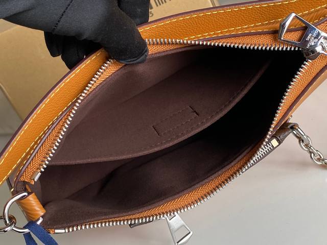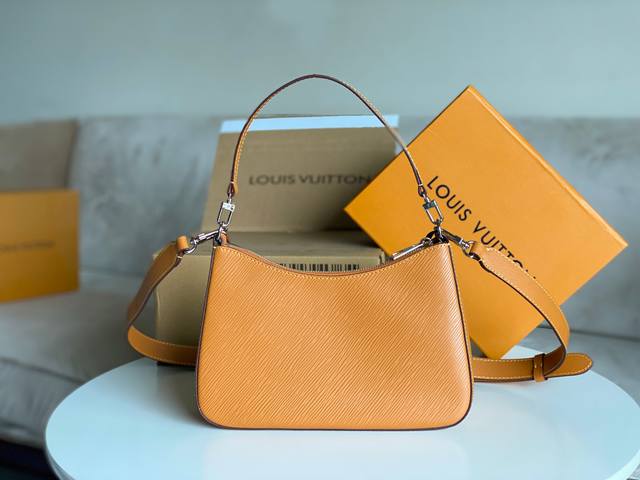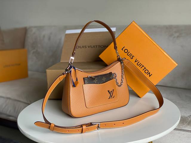 对版开发细节完美原单五金 Marelle 手袋 M80749黄色 腋下包 Marelle 手袋取材 Epi 粒面皮革,以链条固定外袋之中的可拆卸帆布拉链袋。系上