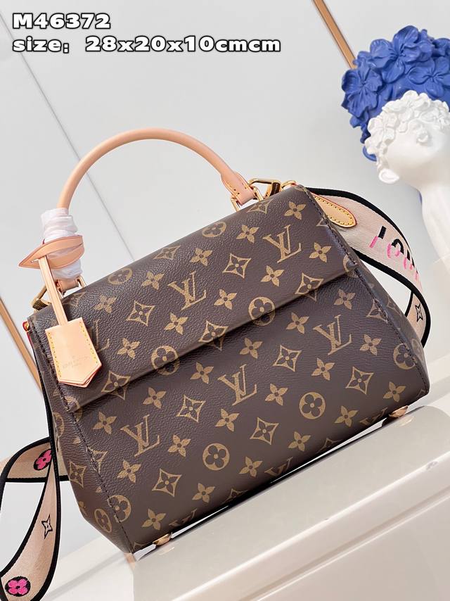 M46372 本款 Cluny Bb 手袋取材经典 Monogram 帆布,专为繁忙生活而设计。宽大开口下设考究内里,便于拿取物品。磁吸翻盖与拉链内袋确保物品安全无虞。多彩皮革肩带实现斜挎,增添盎然活力;顶部手柄实现优雅手提。详细特征28 X 20 X 10厘米 长度 X 高 X 宽 S Y