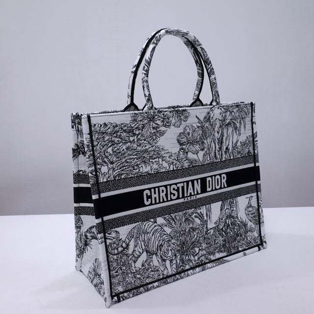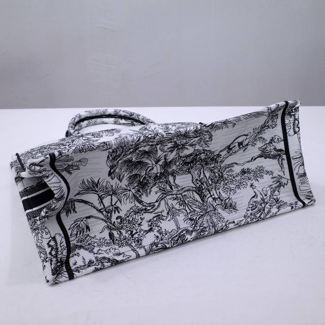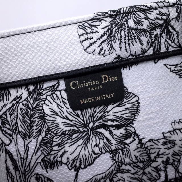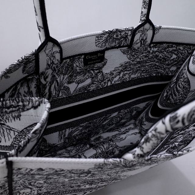 Dio.R Book Tote Dio.R Or限定系列,通体饰以由彼得罗 鲁福 Pieteo Ruffini 创作的白色和黑色Voyage茹伊印花图案刺绣,以富有印度风情的植物衬托Dio.R先生的经典图案,可收纳各种日常用品。 可手提可肩背