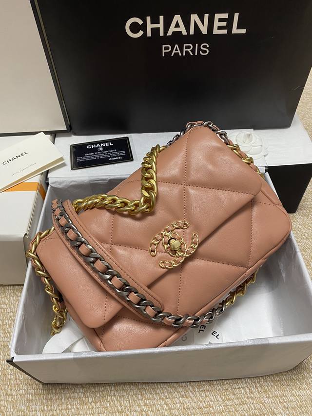 时尚前沿,高贵气质 ,19款链条斜挎包 大菱格豆腐包进口羊皮单口包 3色金属混搭肩带 粗链条彰显休闲风格 这种非定型包不同配搭衣服不同背法都很随性 ,皮穿链Logo很有特色,出了大中小三个尺寸,还有腰包,发财包,关键还每一款都那么Nice,颜色材质官方不断更新,永不过时,已经是经典中的经典了,没有那一款式能超越,值得拥有,尺寸:26Cm/30Cm