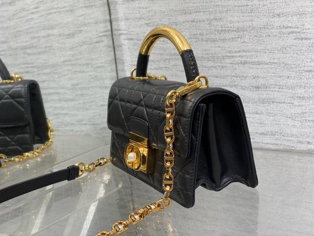 Ange秋冬系列,无法拒绝的优雅气息,采用进口的小牛皮精心制作,搭配超大菱形格,复古又时髦,金色的金属手柄镌刻标志性的字母,精致的珍珠锁扣,满满的高级感,链条肩带上镶嵌了一颗颗小珍珠,多格层设计,精美之余日常使用也非常实用,小公主们必入款